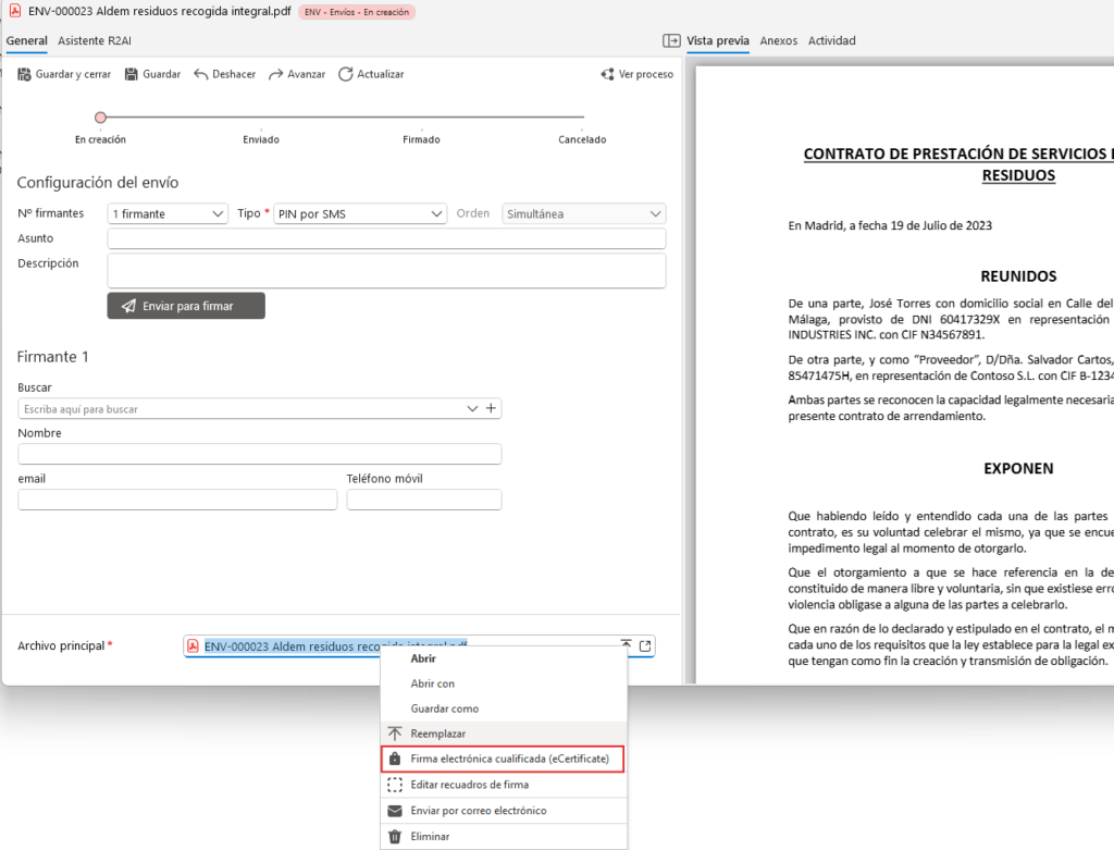Once we have finished, click “Save” and the document is ready to be signed with eCertificate.